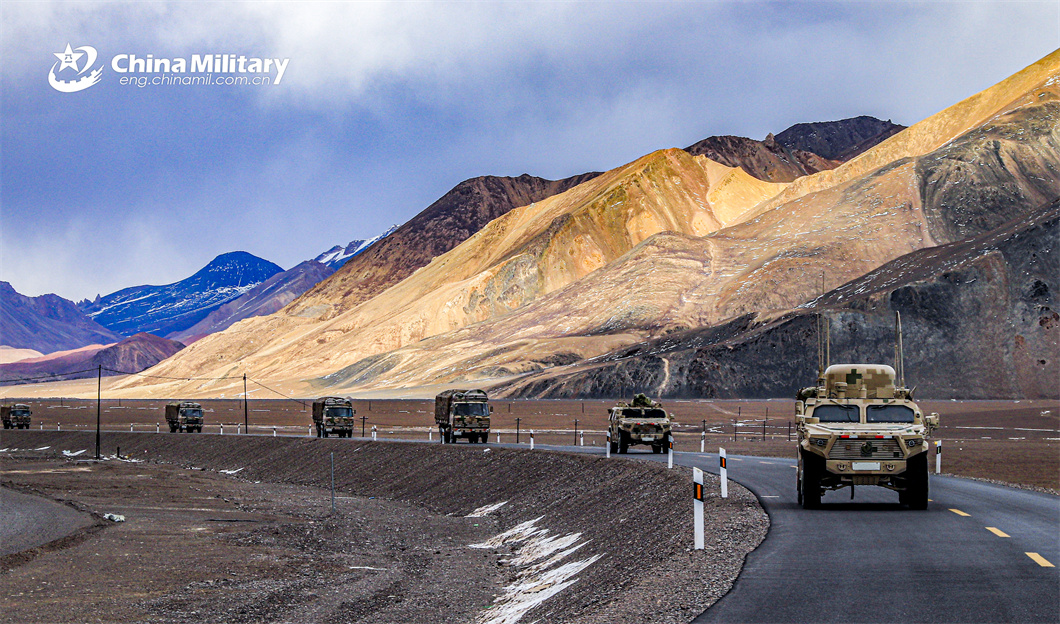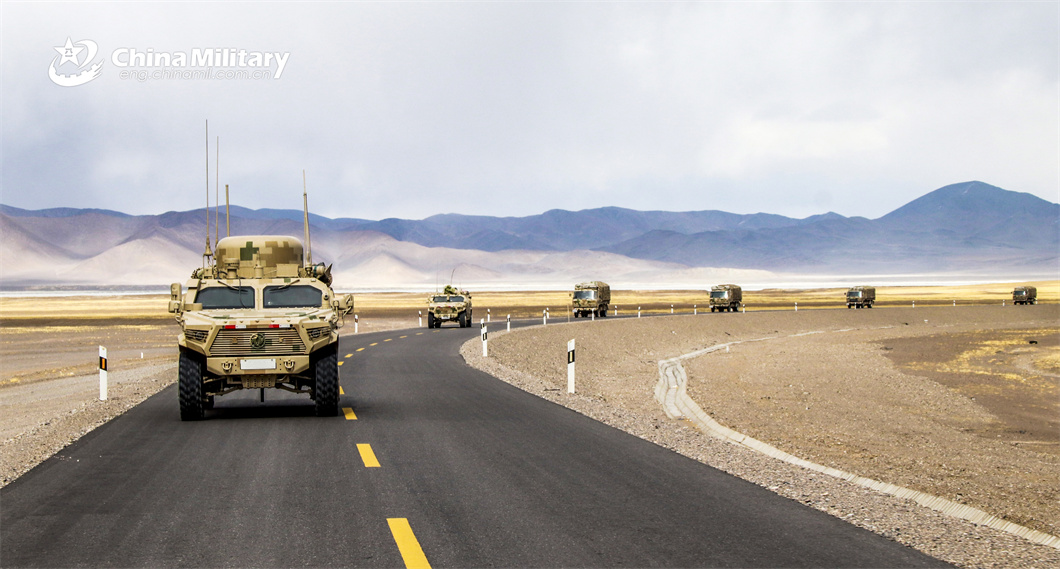 A convoy of military trucks attached to a regiment under the PLA Army is en route to the designated training field during a driving skill training exercise on April 12, 2024. (eng.chinamil.com.cn/Photo by Liu Jintao)