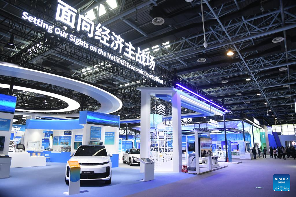 This photo taken on April 28, 2024 shows the interior view of a permanent exhibition at the Zhongguancun Exhibition Center in Beijing, capital of China. The permanent exhibition will be opened to the public recently, showcasing more than 430 technologies and products from more than 320 research institutions and enterprises in Beijing in cutting-edge fields such as artificial intelligence, quantum information, commercial aerospace, life and health, and synthetic biological manufacturing. Among them are some of the major achievements released or unveiled at the 2024 Zhongguancun Forum. (Xinhua/Ren Chao)