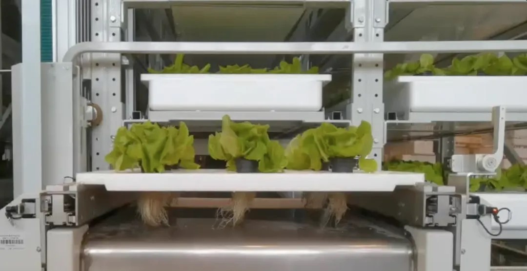 The plant factory runs this way. A computer commands robotic arms to plant lettuce seedlings onto plates, and then the plates are sent to designated tiers of the racks, where the seedlings receive lighting and nutrient solutions. When the lettuce plants mature, they are withdrawn from the racks and packed after their roots are cut off. Thanks to intelligent management and assistive robots, the plant factory is completely unattended, from seeding to harvesting, and to packing.