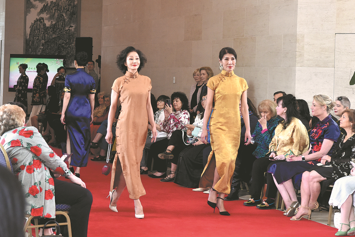 Models showcase qipao at the Experience Chinese Fashion and Arts event at the Chinese embassy in Washington on Friday. SHA HANTING/CHINA NEWS SERVICE