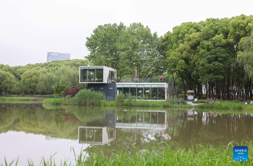 This photo taken on April 27, 2024 shows a lounge at the botanical garden in Jiaxing City, east China's Zhejiang Province. Recently, Jiaxing Botanical Garden completed a new round of renovation and attracted many tourists. (Xinhua/Sun Fanyue)