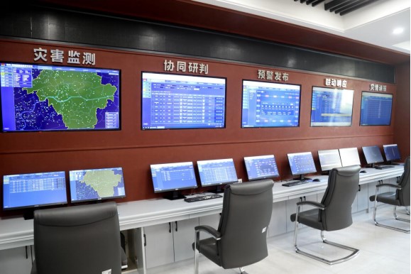 Photo shows an intelligent early warning information platform in Yunyang county, southwest China's Chongqing municipality. (Photo from the public account of the publicity department of Yunyang county on WeChat)
