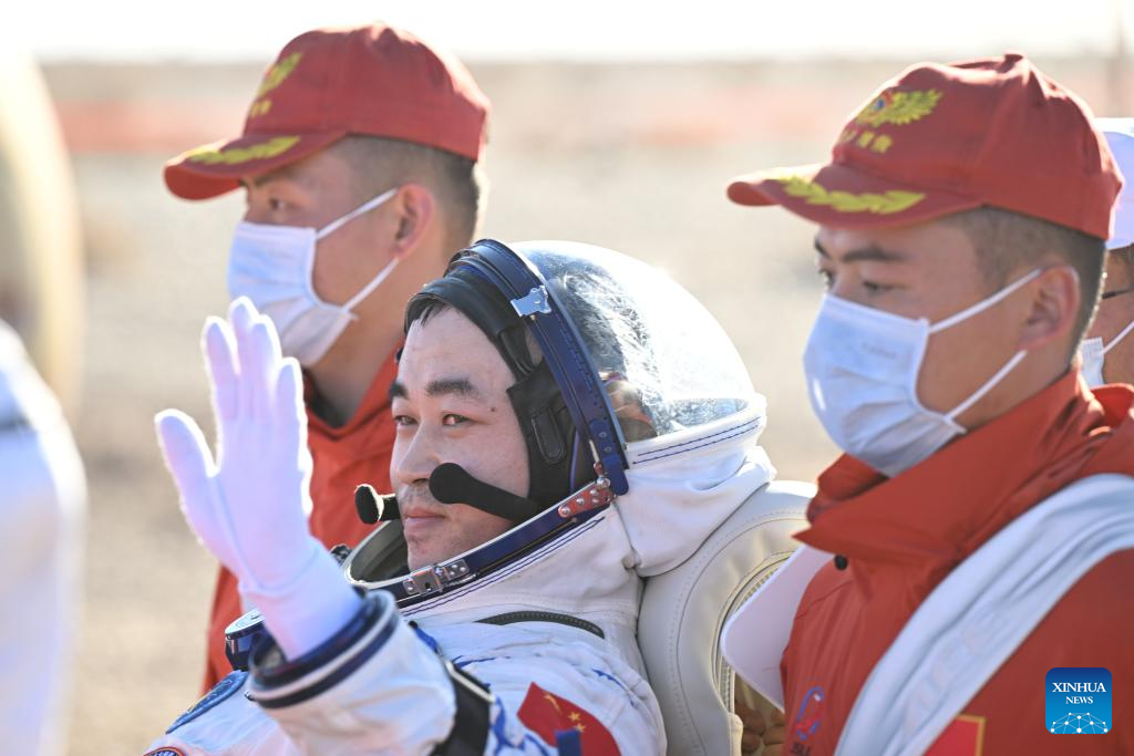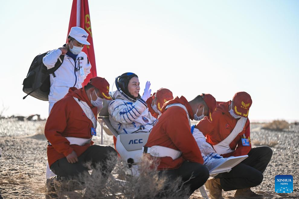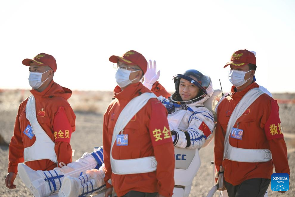 JIUQUAN, April 30 (Xinhua) -- The three astronauts of the Shenzhou-17 manned mission -- Tang Hongbo, Tang Shengjie and Jiang Xinlin -- were all out of the return capsule that touched down at the Dongfeng landing site in north China's Inner Mongolia Autonomous Region on Tuesday.