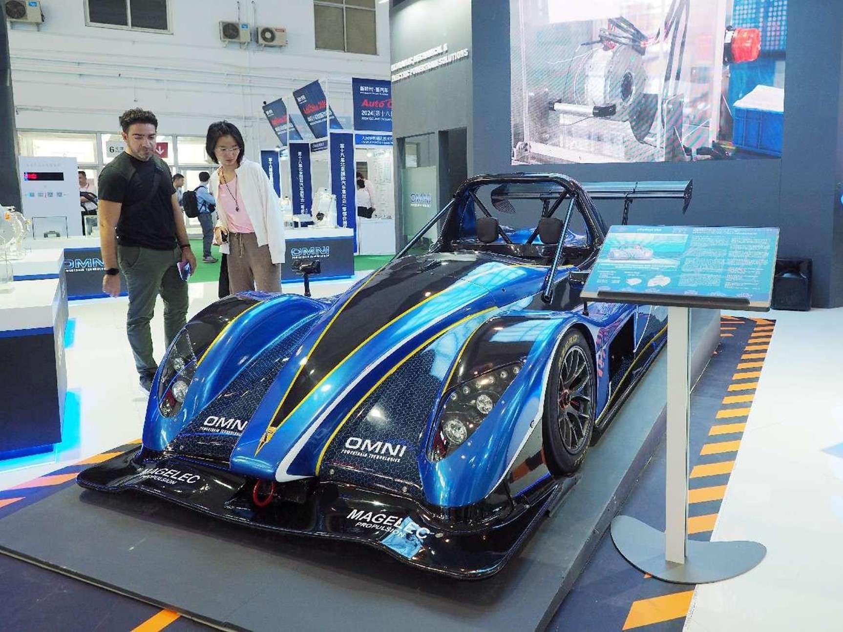 An electric racing car is exhibited at the 2024 Beijing International Automotive Exhibition, April 25, 2024. (Photo by Du Jianpo/People's Daily Online)