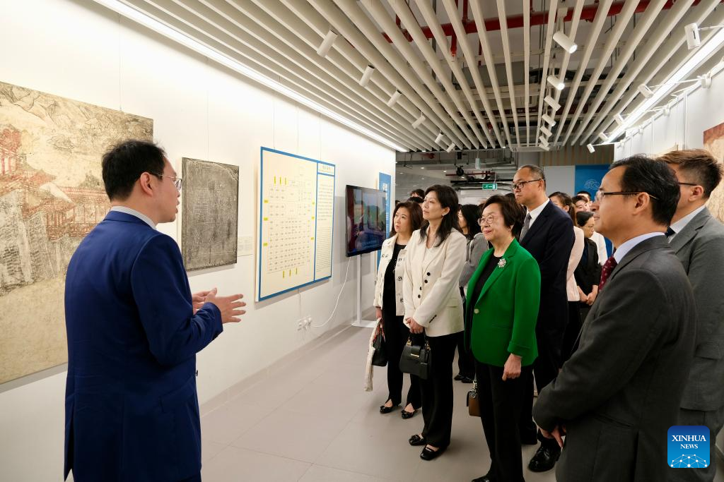 Guests visit "A Golden Age on the Walls", a special exhibition on Tang Dynasty (618-907) murals, in Macao, south China, April 30, 2024. The exhibition will be held till May 11. (Xinhua/Guo Yuqi)