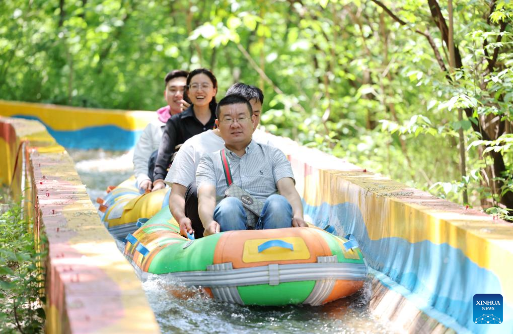Tourists experience drifting in Zhuquan Village of Yinan County, Linyi City, east China's Shandong Province, May 1, 2024. (Photo by Wang Yanbing/Xinhua)