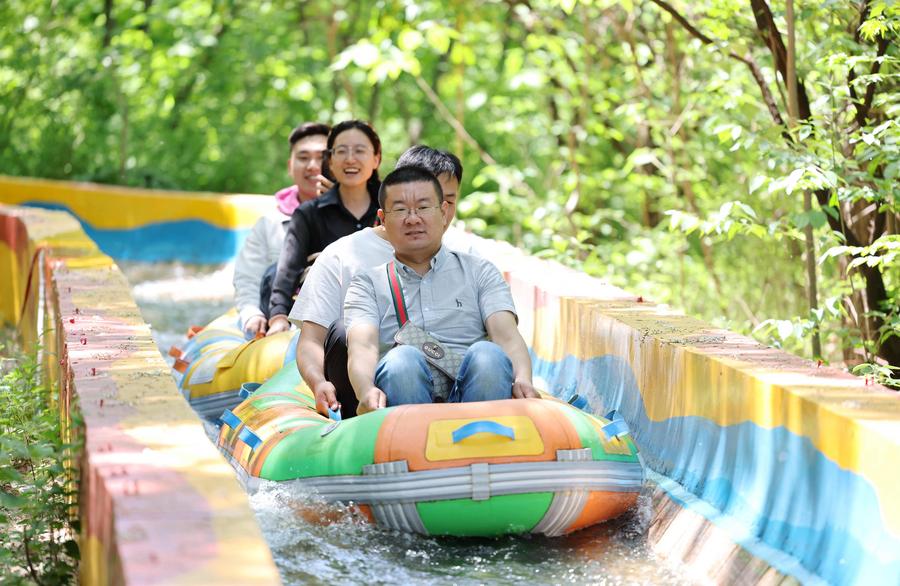 Tourists experience drifting in Zhuquan Village of Yinan County, Linyi City, east China's Shandong Province, May 1, 2024. (Photo by Wang Yanbing/Xinhua)