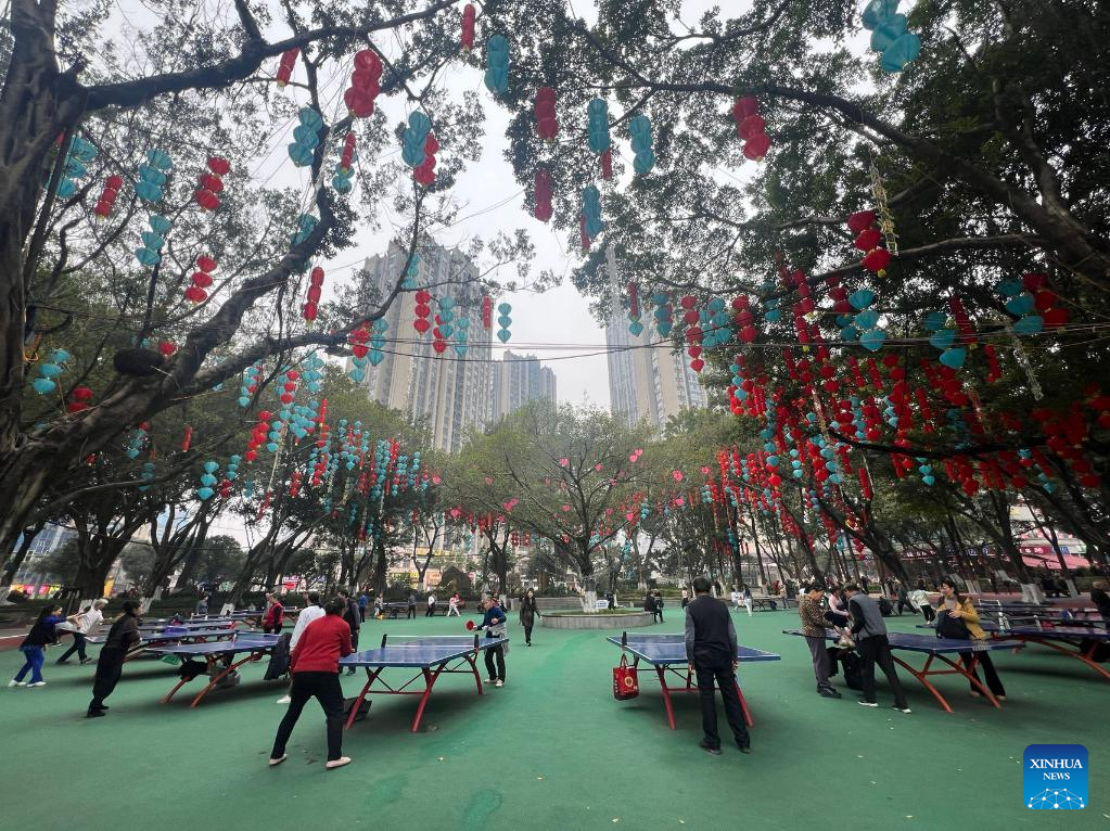 This photo taken with a mobile phone shows the fitness area of Dadukou Park in Dadukou District, southwest China's Chongqing, on March 5, 2024. (Xinhua/Yang Shiyan)