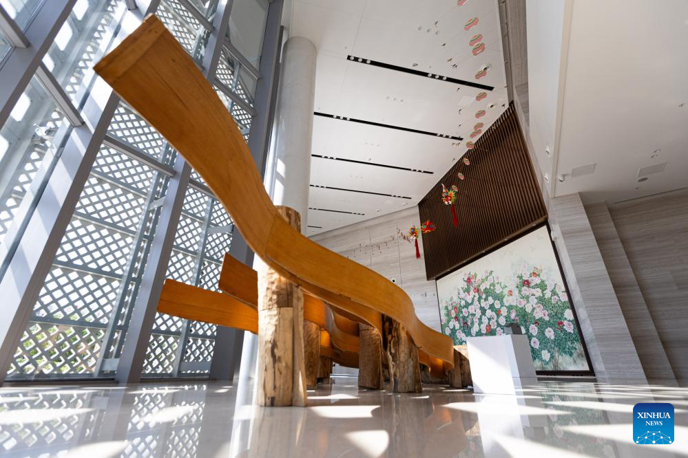 This photo taken on May 5, 2024 shows an art installation displayed at the China Cultural Center in Belgrade, Serbia. The China Cultural Center in Belgrade, jointly built by China's Ministry of Culture and Tourism and the provincial government of Shandong, opened to the public recently. The center covers an area of 6,000 square meters and offers classes on Chinese language, traditional Chinese musical instruments, Chinese calligraphy, and Tai Chi. (Xinhua/Li Jing)