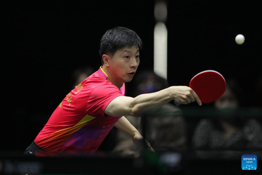 Ma Long of China returns a shot during the men's singles round of 64 match against Martin Allegro of Belgium at WTT Saudi Smash 2024 in Jeddah, Saudi Arabia, May 5, 2024. (Xinhua/WTT)