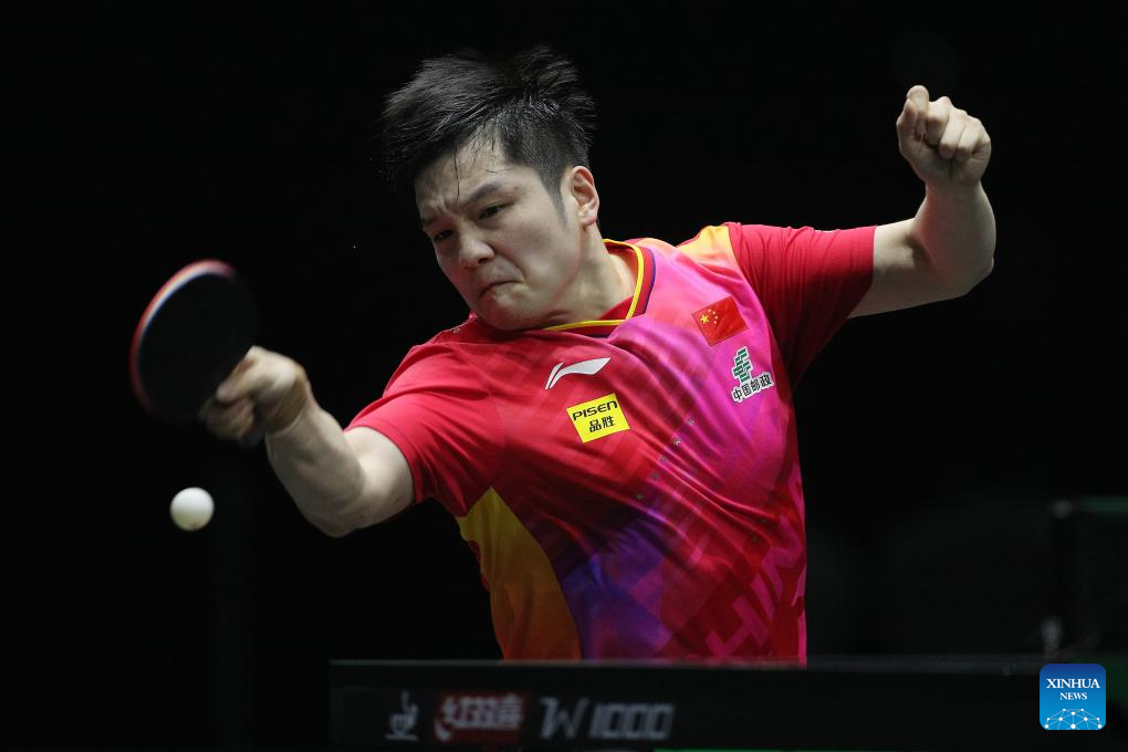 Fan Zhendong of China returns a shot during the men's singles round of 64 match against Nicolas Burgos of Chile at WTT Saudi Smash 2024 in Jeddah, Saudi Arabia, May 5, 2024. (Xinhua/WTT)