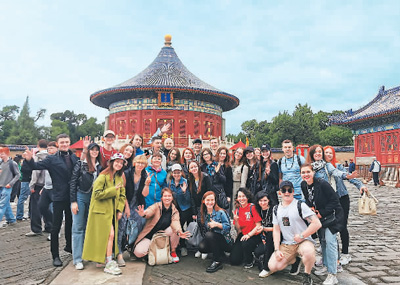 Russian tourists pose for a group photo in front of the Temple of Heaven in Beijing. (Photo courtesy of CTG Travel)