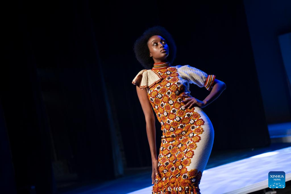 A model presents a creation at Soweto Fashion Week in Soweto, Johannesburg, South Africa, on May 8, 2024. (Photo by Ihsaan Haffejee/Xinhua)