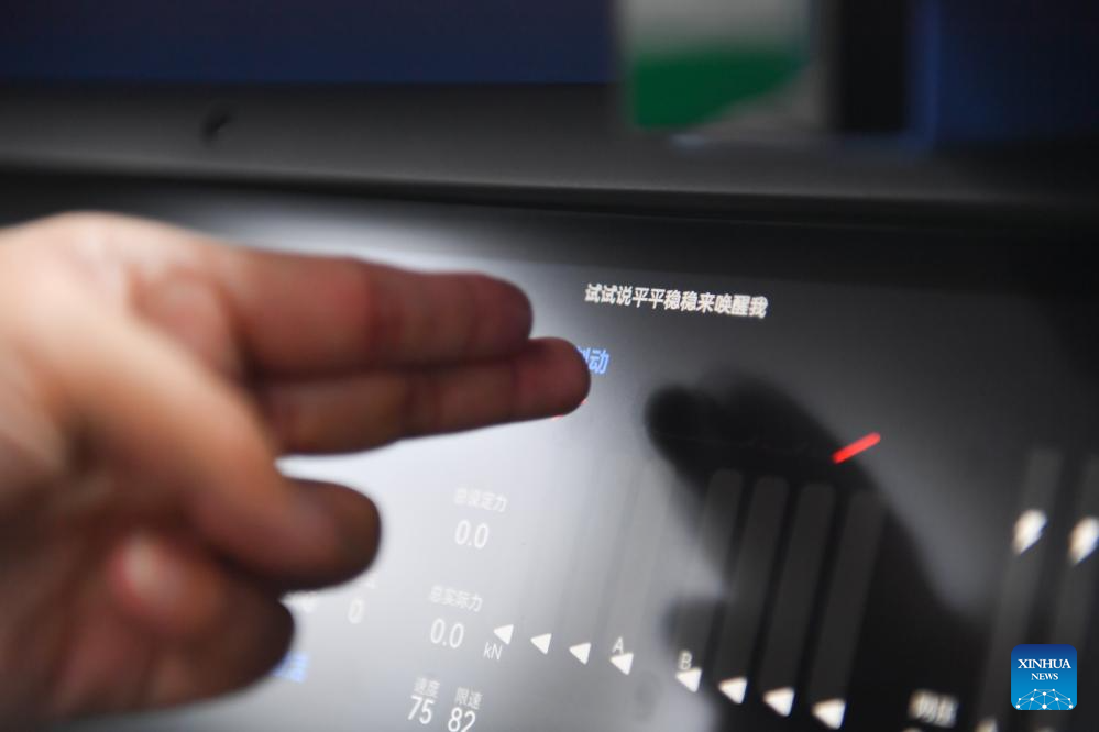 This photo shows the driving cabin of an intelligent heavy-haul electric locomotive in Zhuzhou, central China's Hunan Province, May 9, 2024. An intelligent heavy-haul electric locomotive officially rolled off the production line in Zhuzhou on Thursday. It will be used in the heavy-haul transportation of Shuozhou-Huanghua Railway, China's second-largest channel for coal transport. (Xinhua/Chen Zeguo)