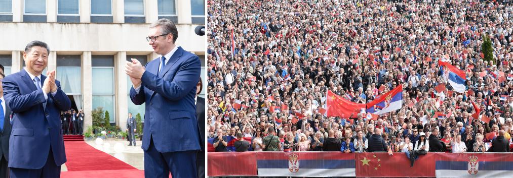 In a splendid moment showcasing the spirit of camaraderie and solidarity, President Xi Jinping and Serbian President Aleksandar Vucic walked side by side through the grand hall of the Palace of Serbia, emerging to a jubilant crowd of thousands gathered outside.