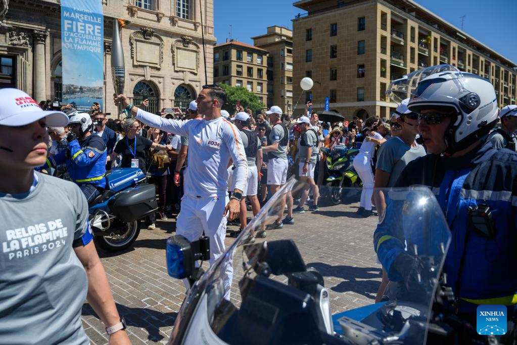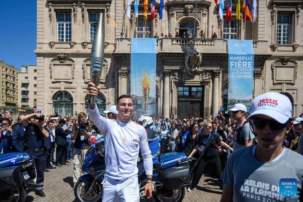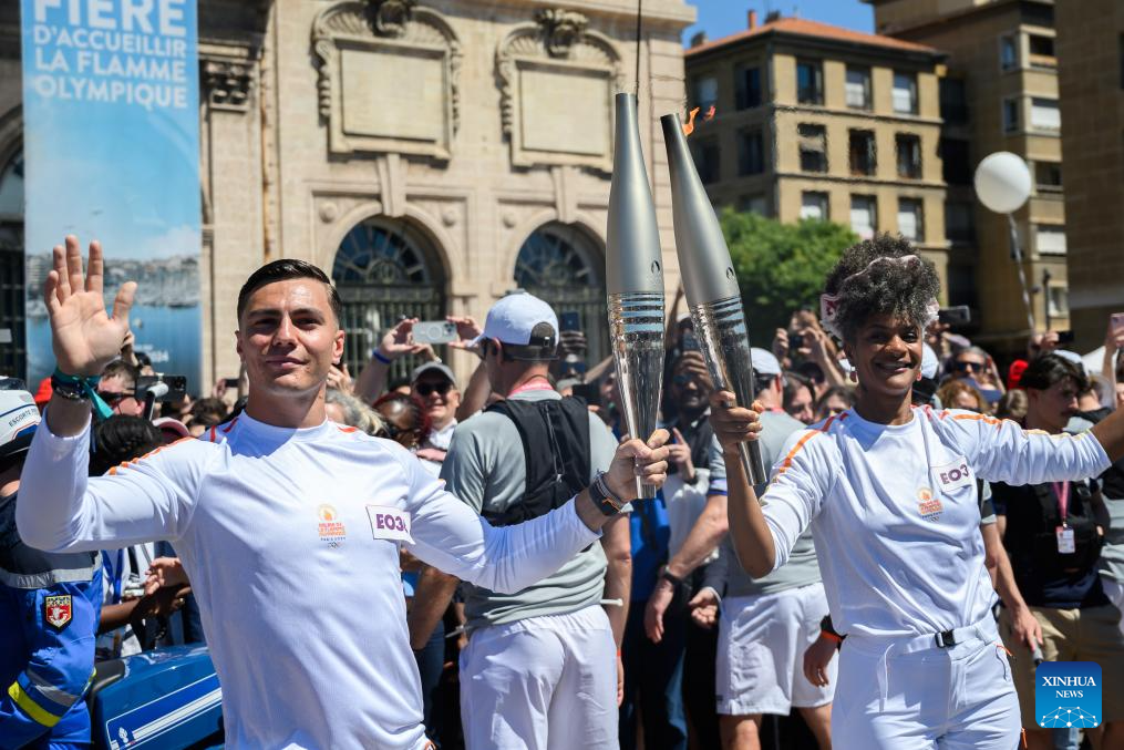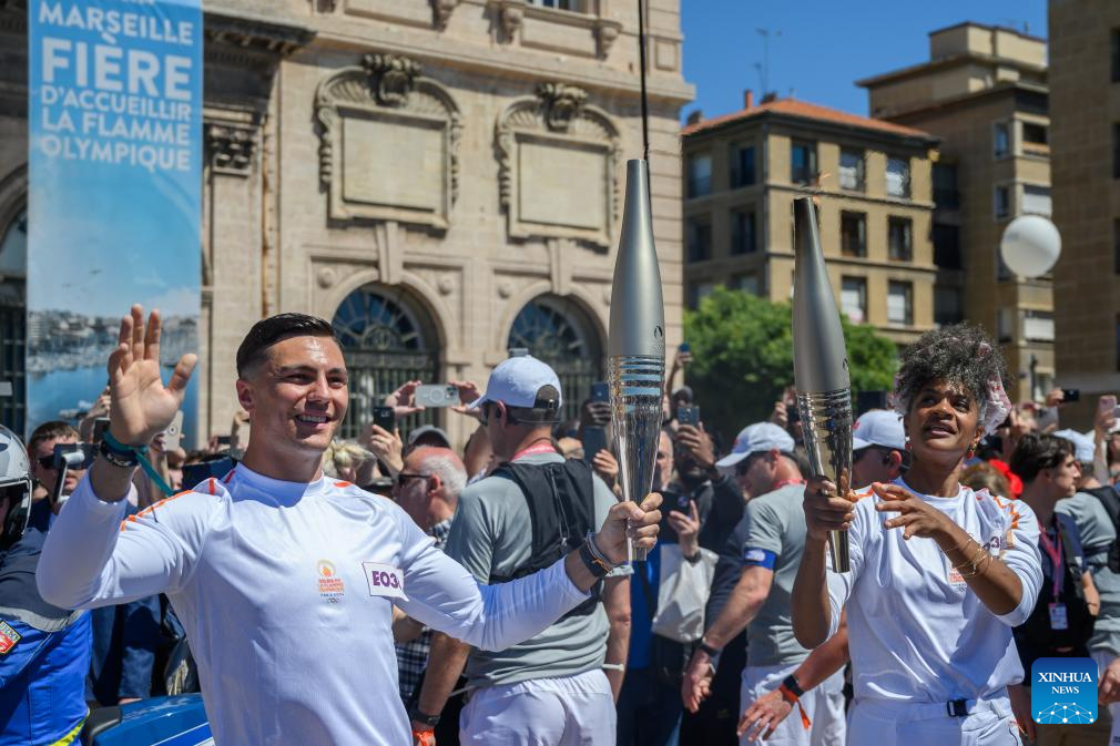 MARSEILLE, France, May 9 (Xinhua) -- Following the arrival of the Olympic torch at the Vieux Port the day before, the relay kicked off its first stop on French soil in Marseille on Thursday which was imbued with elements of football club Olympique de Marseille.