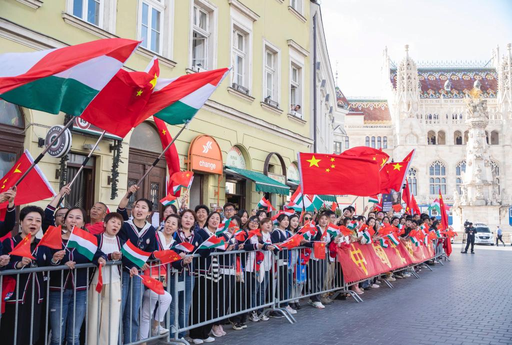 People bid farewell to Chinese President Xi Jinping in Budapest, Hungary, May 10, 2024. Chinese President Xi Jinping left Budapest on Friday after paying state visit to Hungary. (Xinhua/Zhao Dingzhe)