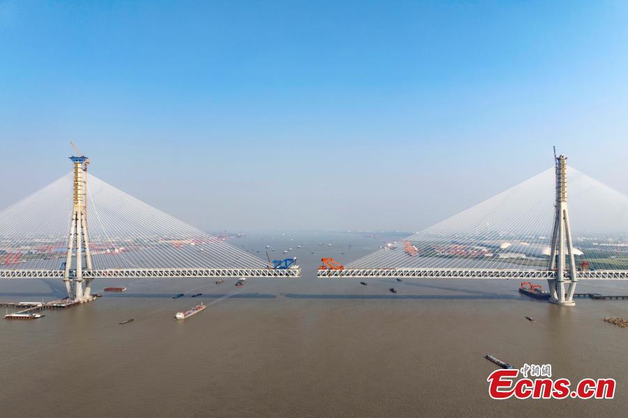 The construction site of the Changtai Yangtze River Bridge in Changzhou, east China's Jiangsu Province, May 10, 2024. (Photo: China News Service/Yang Bo)