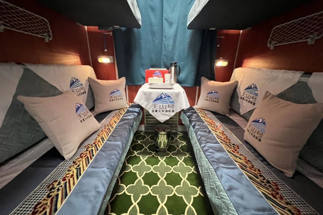 It is the first "Tianshan" high-quality tourist train Xinjiang's railway authority launched this year.