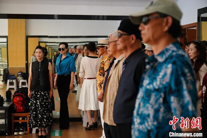 Elderly people learn to walk and pose along the catwalk at the Yunnan University for The Elderly on April 2, 2024. (China News Service/Liu Ranyang)