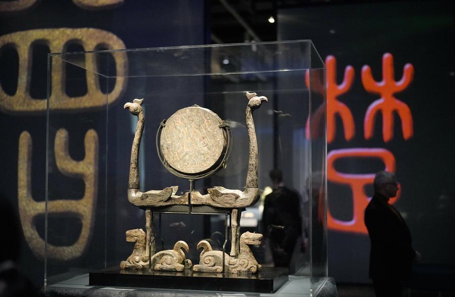 BEIJING, May 13 (Xinhua) -- From stately phoenixes, writhing serpents and horned spirits to fleshy jades, sonorous bells and swathes of wispy silk, the cultural relics from China's Bronze Age thrilled visitors at the Asian Art Museum in San Francisco.