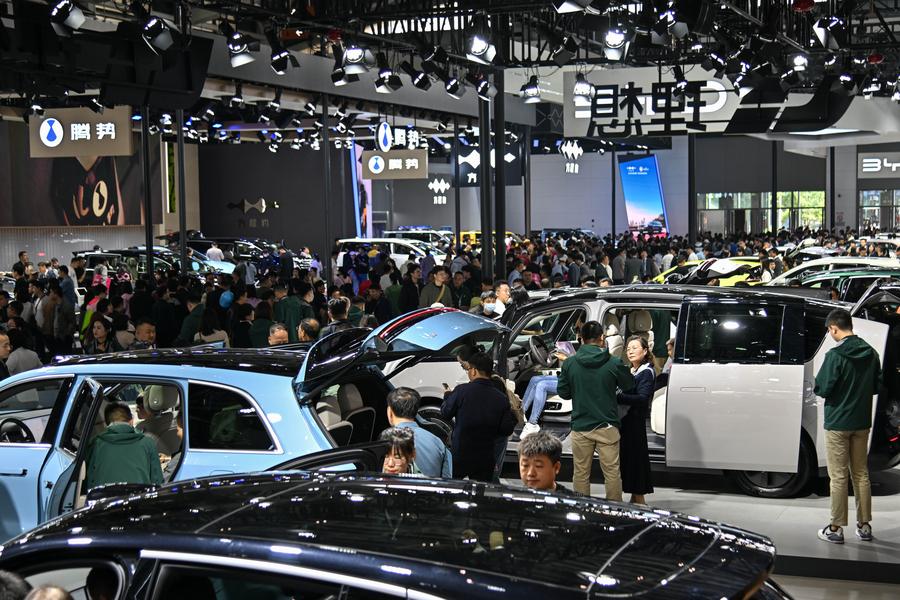 People visit an auto show in Xi'an, northwest China's Shaanxi Province, May 1, 2024. (Xinhua/Zhang Bowen)