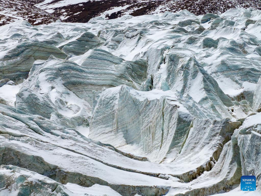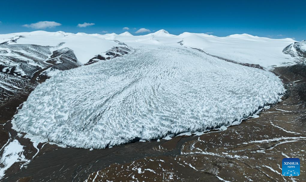 An aerial drone photo taken on May 11, 2024 shows a view of the Zangser Kangri Glacier at the Changtang National Nature Reserve, southwest China's Xizang Autonomous Region. (Xinhua/Tenzin Nyida)