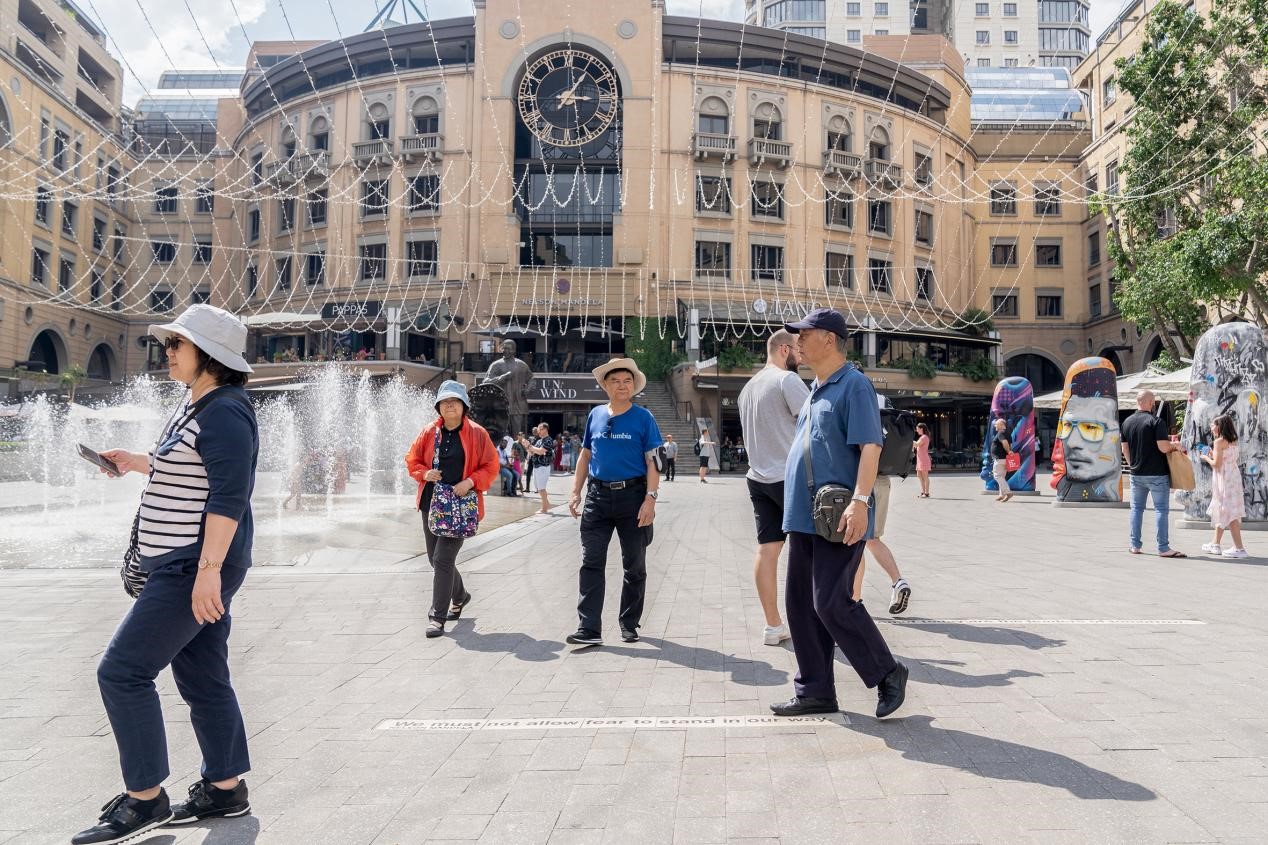 Chinese tourists visit the Nelson Mandela Square in Johannesburg, South Africa. (Photo/Shiraaz)