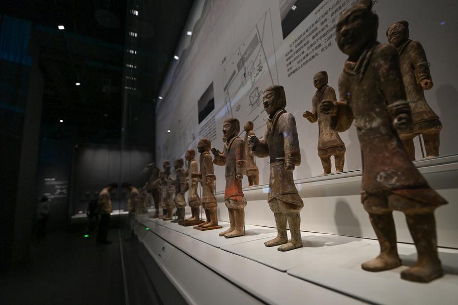 Pottery figurines are displayed at the Qin Han Museum of the Shaanxi History Museum in Xi'an, capital of northwest China's Shaanxi Province, May 6, 2024. (Xinhua/Li Yibo)