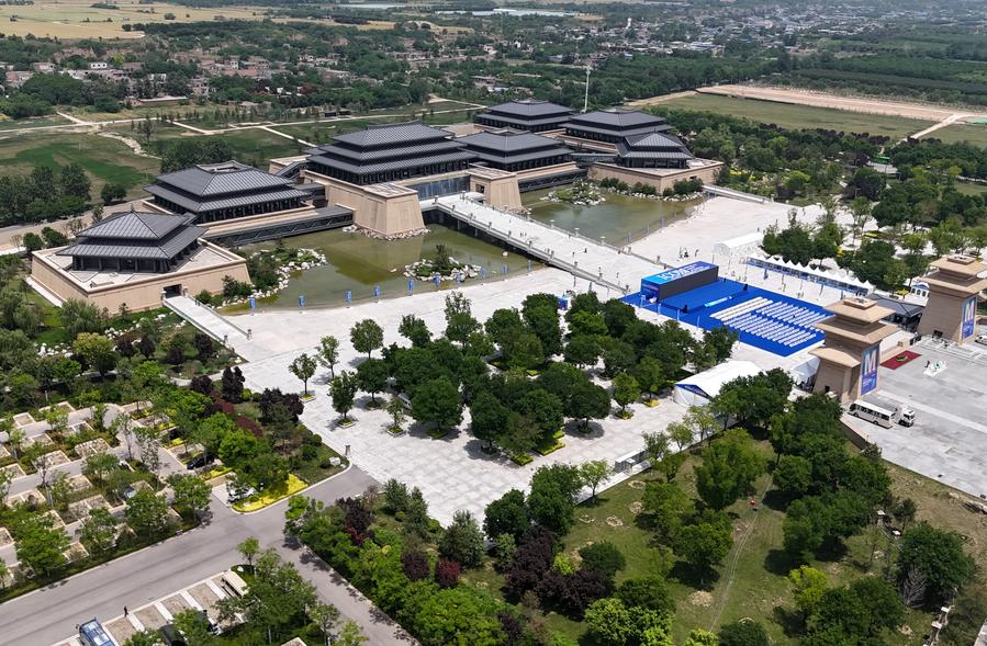 An aerial drone photo taken on May 18, 2024 shows the Qin Han Museum of the Shaanxi History Museum in Xi'an, capital of northwest China's Shaanxi Province. (Xinhua/Li Yibo)