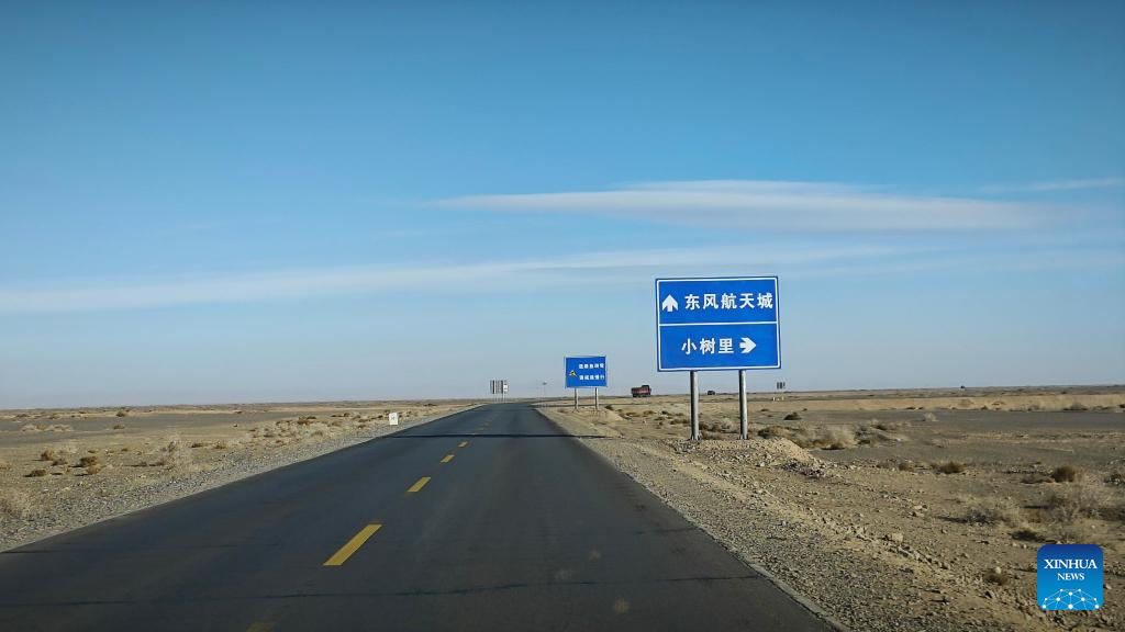This photo taken on Nov. 26, 2023 shows a road heading towards the Dongfeng Space City in northwest China. (Xinhua/Jia Zhao)