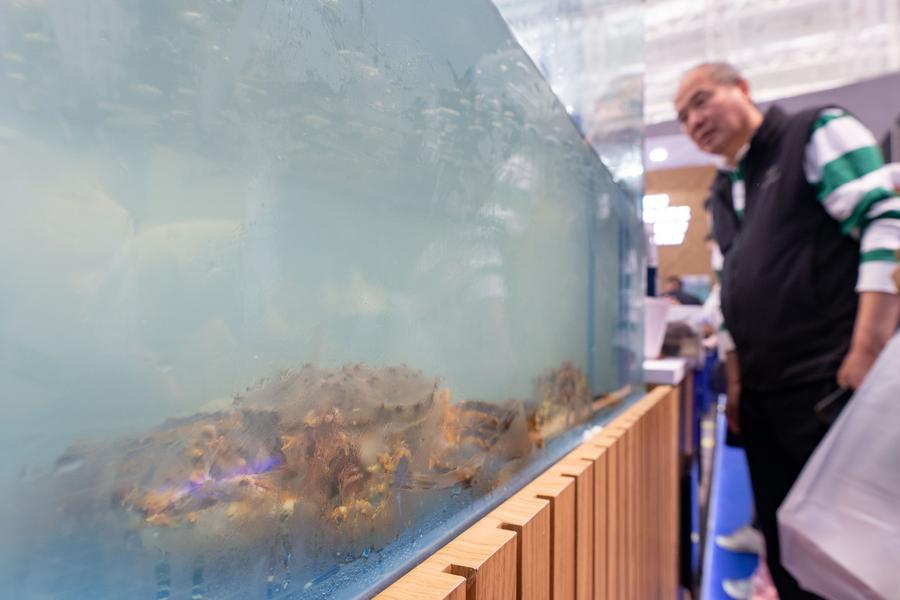 A visitor buys king crabs during the eighth China-Russia Expo in Harbin, northeast China's Heilongjiang Province, May 20, 2024. (Xinhua/Xie Jianfei)