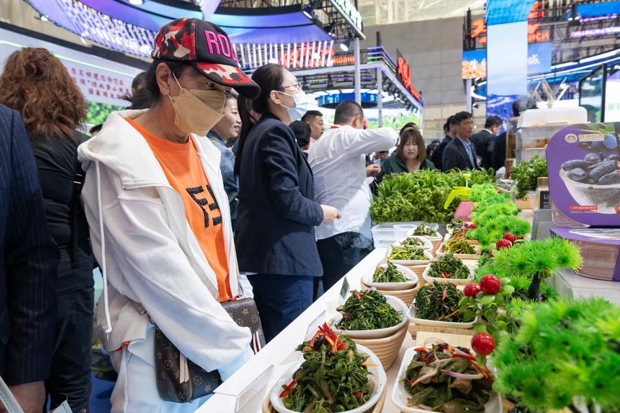Visitors look at culinary dishes during the eighth China-Russia Expo in Harbin, northeast China's Heilongjiang Province, May 20, 2024. (Xinhua/Xie Jianfei)