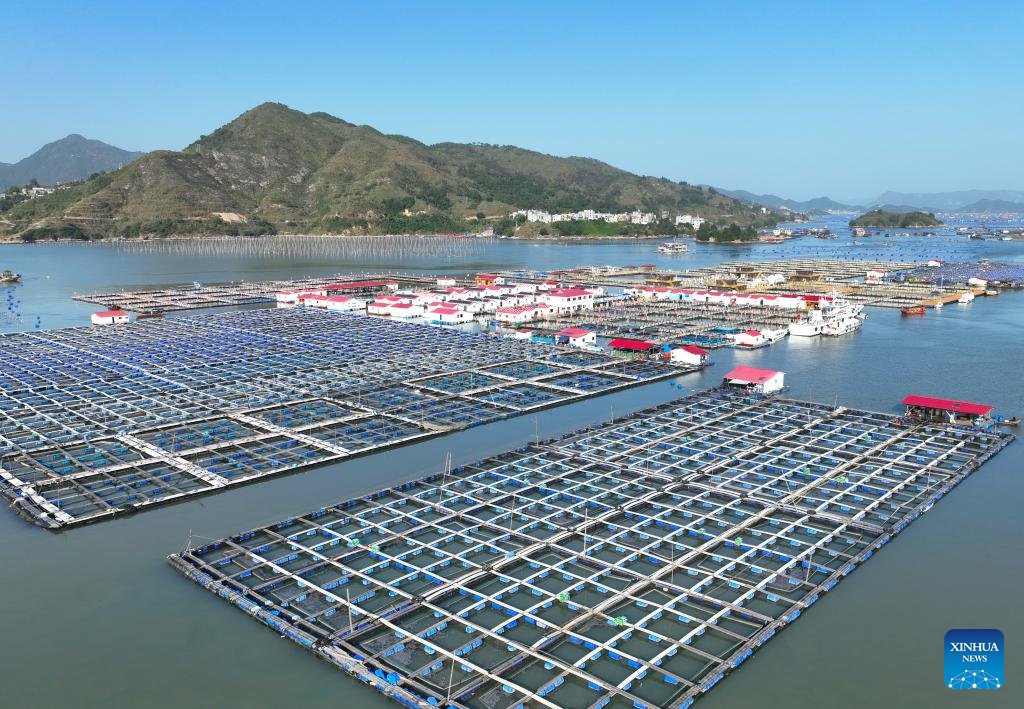 An aerial drone photo taken on Nov. 18, 2023 shows a mariculture zone in Xiapu County, southeast China's Fujian Province. (Xinhua/Lin Shanchuan)