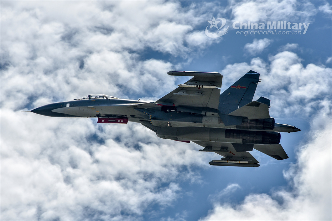 A fighter jet attached to an aviation brigade with the air force under the PLA Eastern Theater Command takes off for an air battle training exercise in early May, 2024. (eng.chinamil.com.cn/Photo by Fu Gan)