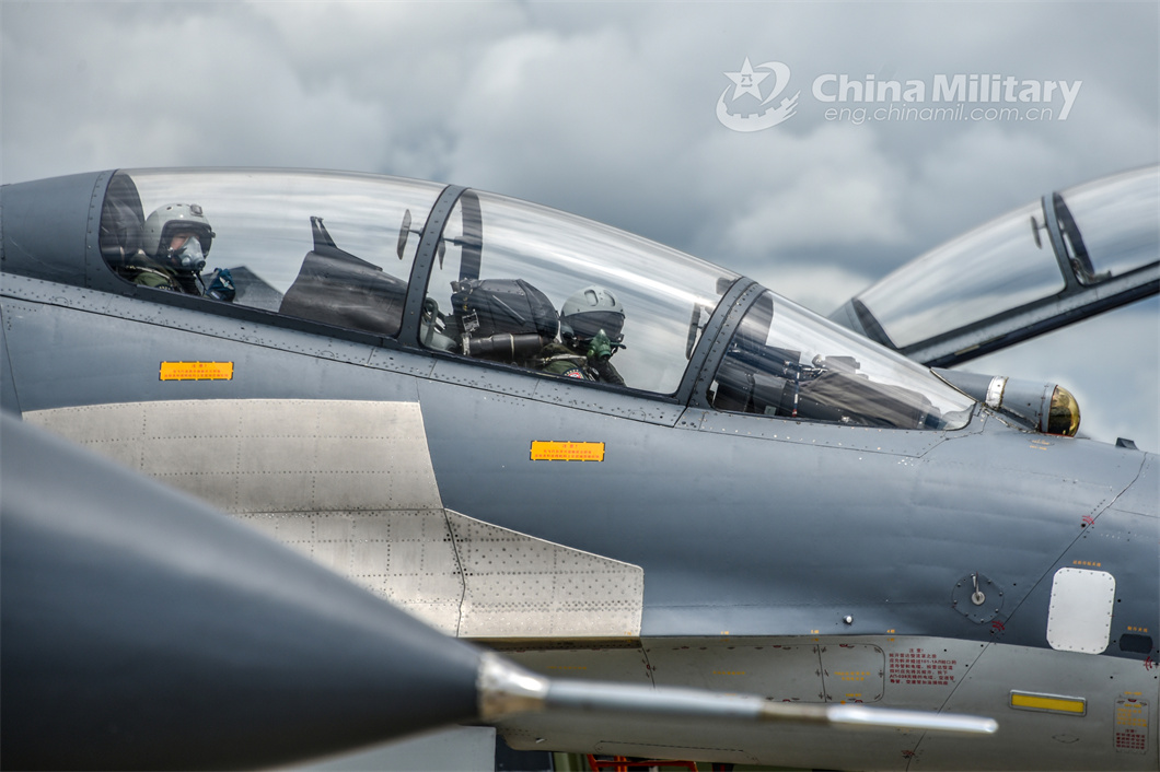 Pilots assigned to an aviation brigade with the air force under the PLA Eastern Theater Command get ready in the cockpit before an air battle training exercise in early May, 2024. (eng.chinamil.com.cn/Photo by Fu Gan)