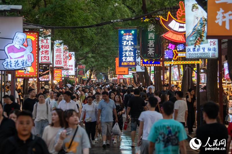 Tourists visit the Muslim Quarter, a famous attraction in Xi'an, capital of northwest China's Shaanxi Province. (People's Daily Online/Weng Qiyu)