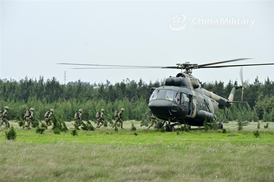Soldiers assigned to a brigade under the PLA 73rd Group Army board a helicopter during a joint assault training exercise on May 11, 2024. (eng.chinamil.com.cn/Photo by Shi Zhipeng)