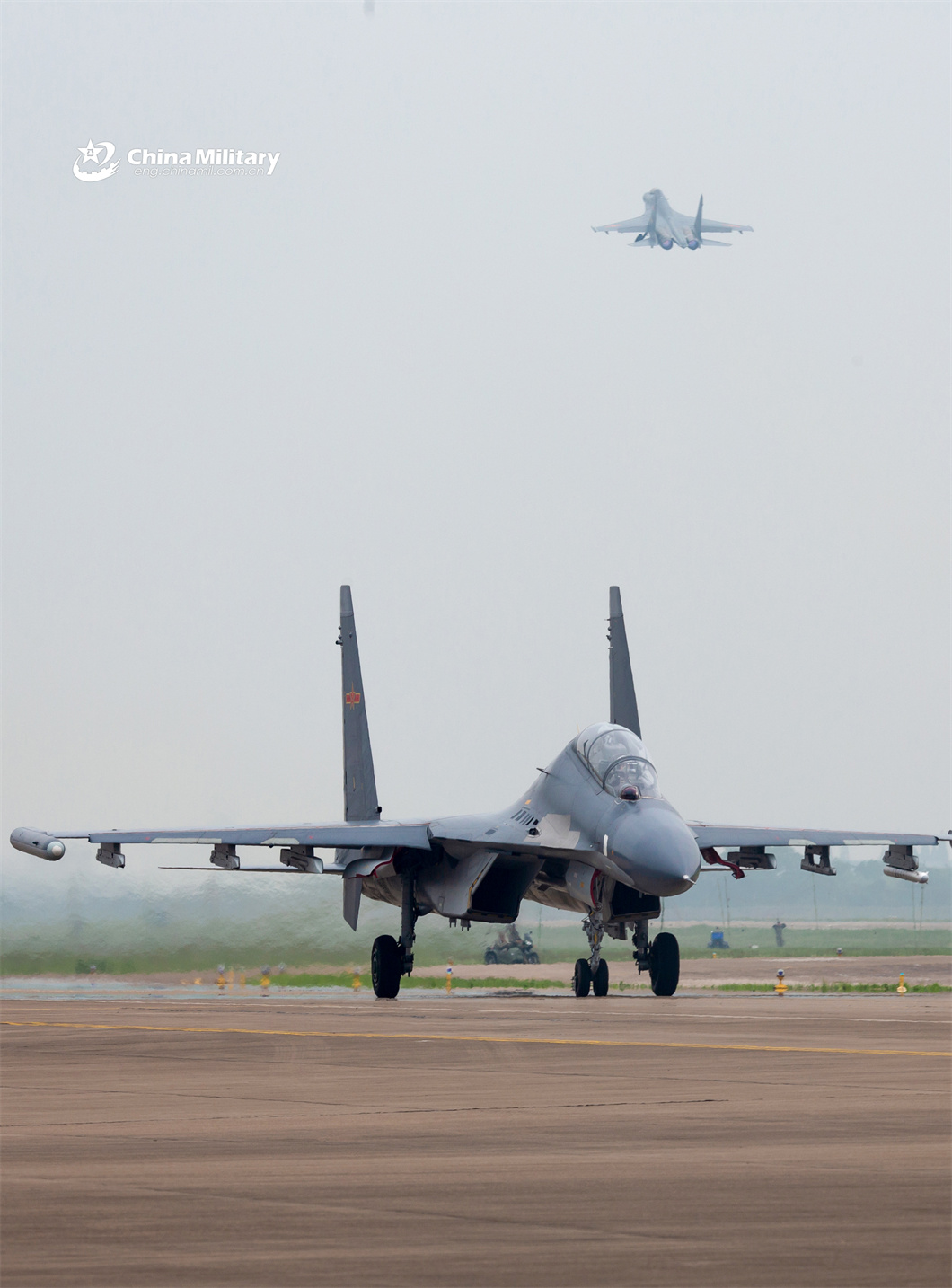 A fighter jet attached to an aviation brigade with the air force under the PLA Eastern Theater Command taxies to the take-off line during a flight training exercise on May 8, 2024. (eng.chinamil.com.cn/Photo by Huang Guotai)
