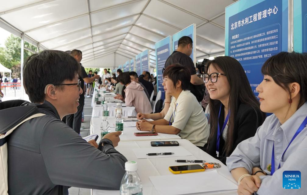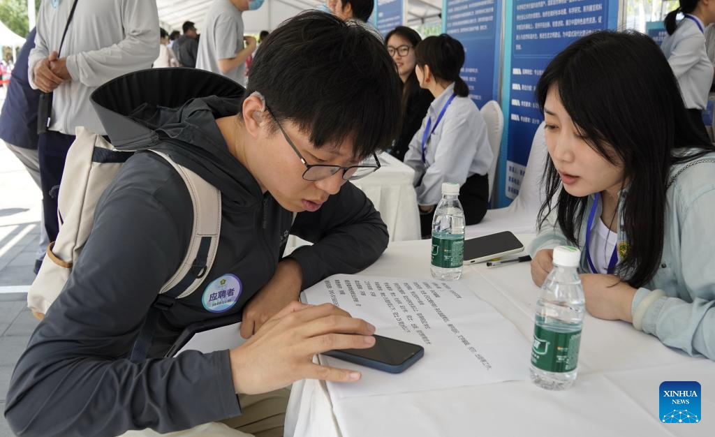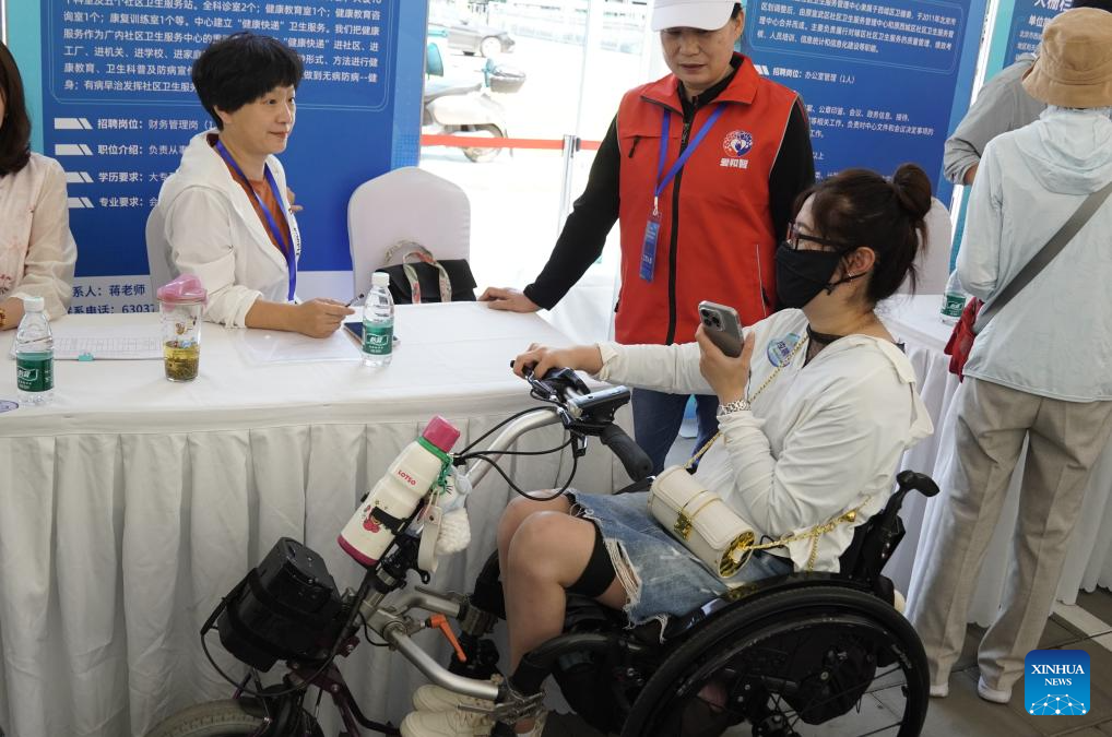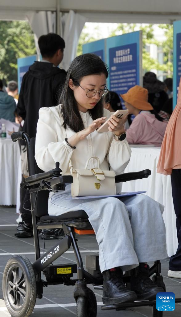 A job seeker attends a job fair dedicated to persons with disabilities in Beijing, capital of China, May 27, 2024. By the end of 2023, the employment rate for persons with disabilities of working age in Beijing had reached 68.5 percent. (Xinhua/Li Xin)