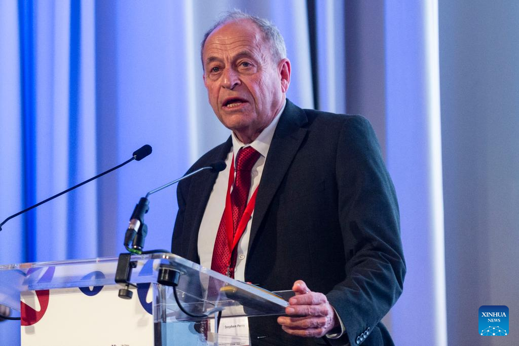 Stephen Perry, president emeritus of Britain's 48 Group Club, speaks at the 3rd United Kingdom (UK)-China Business Leaders Summit in London, Britain, on May 28, 2024. Business leaders and government officials attending the ongoing 3rd United Kingdom (UK)-China Business Leaders Summit here conveyed confidence in the prospect of trade, investment and bilateral ties of the two countries. (Photo by Stephen Chung/Xinhua)
