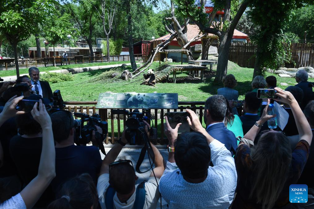 MADRID, May 30 (Xinhua) -- Visitors to Spain's Madrid Zoo Aquarium were introduced Thursday to a giant panda couple from China. The new arrivals were welcomed at an official ceremony attended by authorities and experts from both countries.