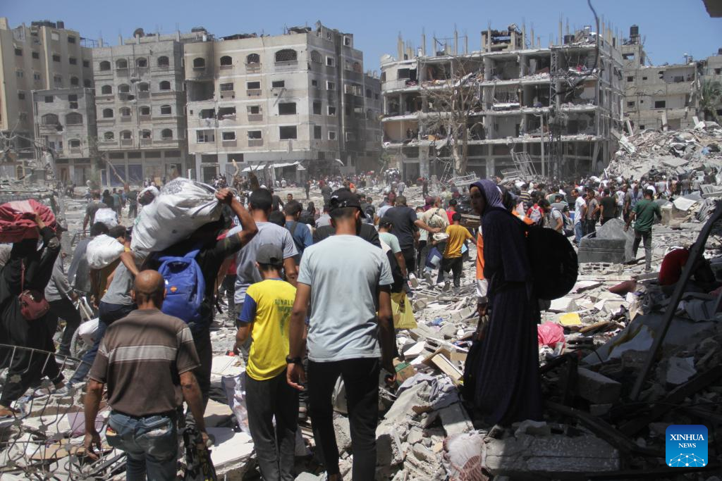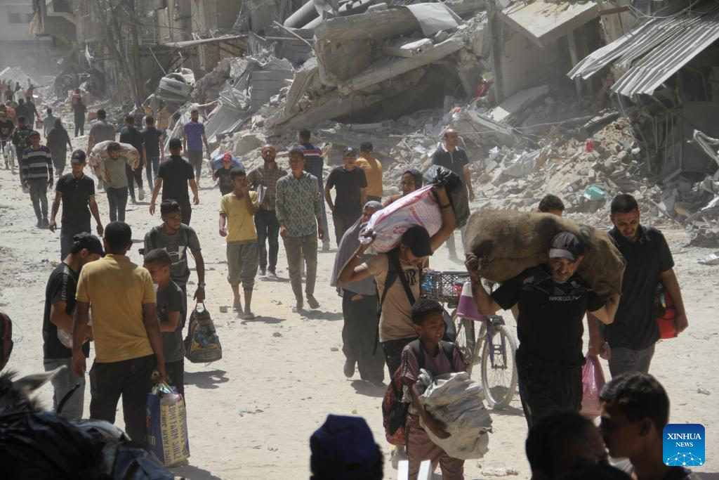 Displaced Palestinians are seen in Jabalia, northern Gaza Strip, on May 30, 2024. Local sources reported that Israeli troops have withdrawn from the western and southern regions of Jabalia in northern Gaza, while some soldiers remain in the northern and eastern areas of the city. In a statement, the emergency committee in the northern Gaza Strip urged residents to "be patient and not return to the northern areas of the Gaza Strip at this time." The statement warned that the Israeli army left a large number of drones that continue to fire on residents. (Photo by Mahmoud Zaki/Xinhua)