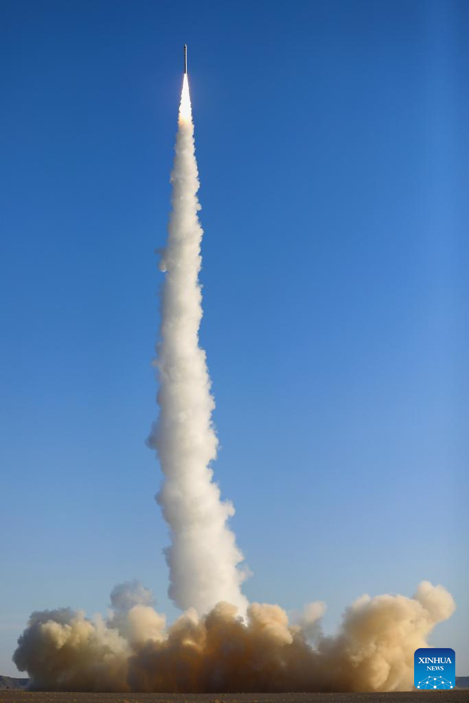 The CERES-1 commercial carrier rocket carrying a group of five satellites blasts off from the Jiuquan Satellite Launch Center in northwest China, May 31, 2024. (Photo by Yang Xiaobo/Xinhua)