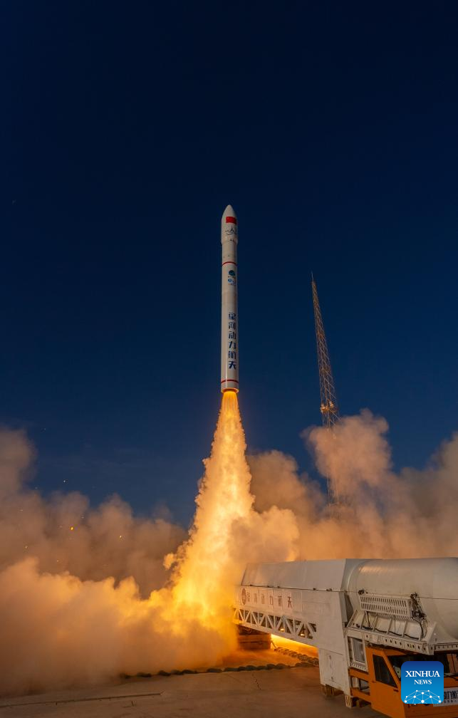 The CERES-1 commercial carrier rocket carrying a group of five satellites blasts off from the Jiuquan Satellite Launch Center in northwest China, May 31, 2024. (Photo by Wang Fei/Xinhua)