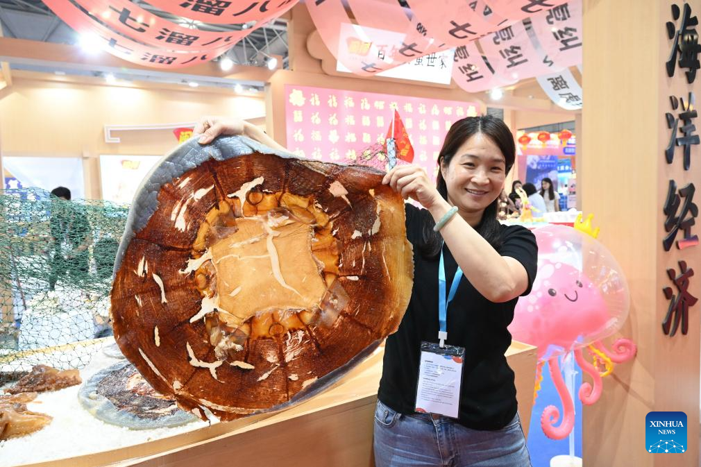 People visit the 2024 China (Fuzhou) International Seafood &Fisheries Expo in Fuzhou, capital of southeast China's Fujian Province, May 31, 2024. The 2024 China (Fuzhou) International Seafood &Fisheries Expo kicked off at Fuzhou Strait International Conference &Exhibition Center in Fuzhou Friday, attracting nearly 500 companies from more than 30 countries and regions. The expo involves aquaculture, ocean fishing, aquatic processing and other fishery industry sectors. (Xinhua/Wei Peiquan)