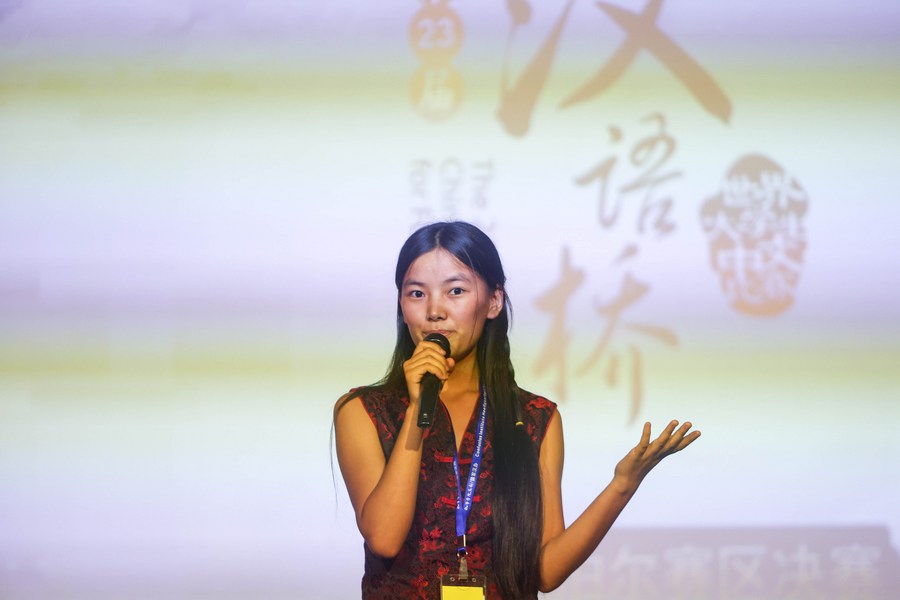 Contestants at the final for the 23rd Chinese-Bridge Chinese proficiency competition for foreign college students in Nepal demonstrate their Chinese language skills and understanding of Chinese culture through speech, knowledge test and talent show.