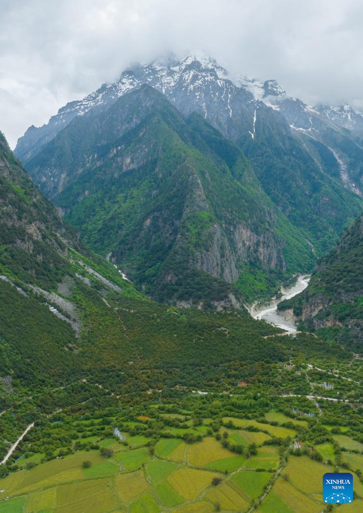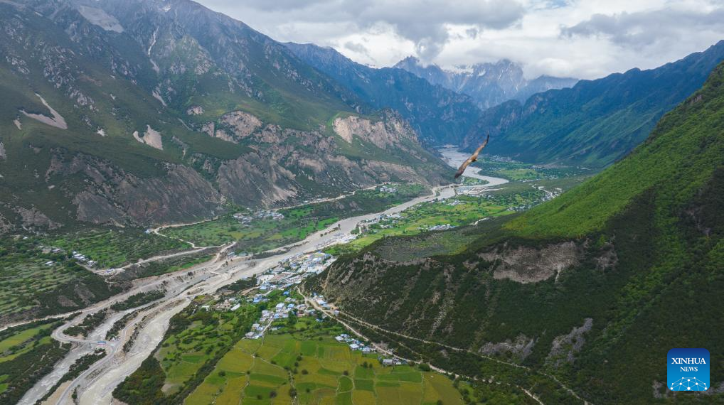 An aerial drone photo taken on June 2, 2024 shows the scenery in Lhari County of Nagqu, southwest China's Xizang Autonomous Region. (Xinhua/Tenzin Nyida)