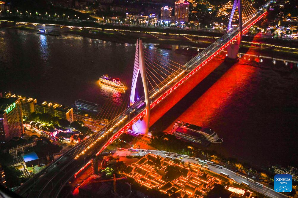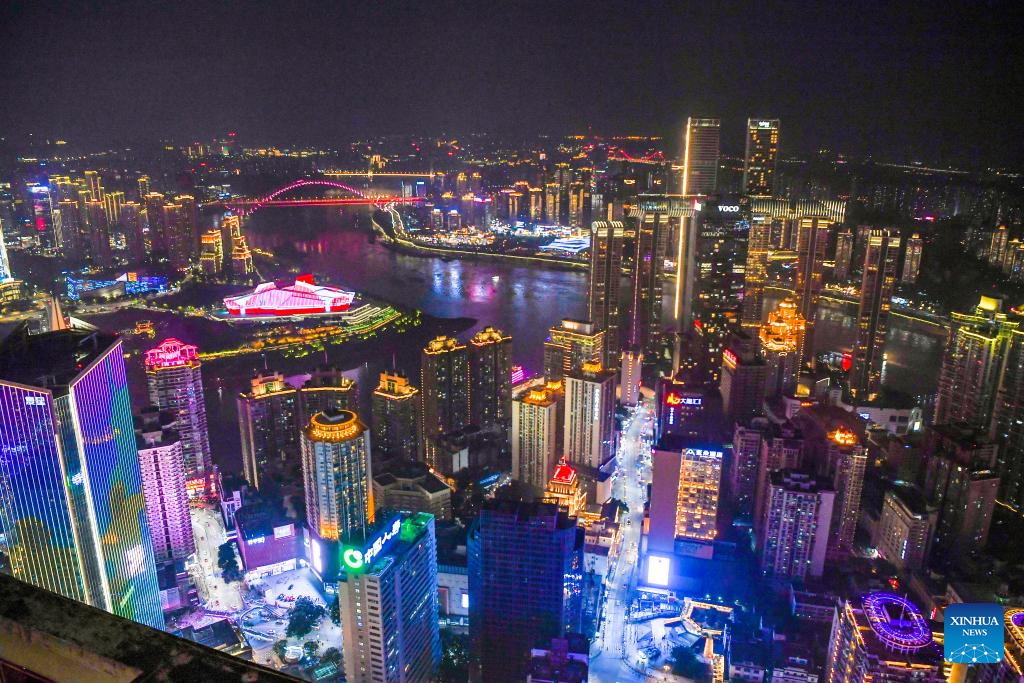 This photo taken on May 30, 2024 shows a night view of Chongqing Municipality, southwest China. (Xinhua/Wang Quanchao)
