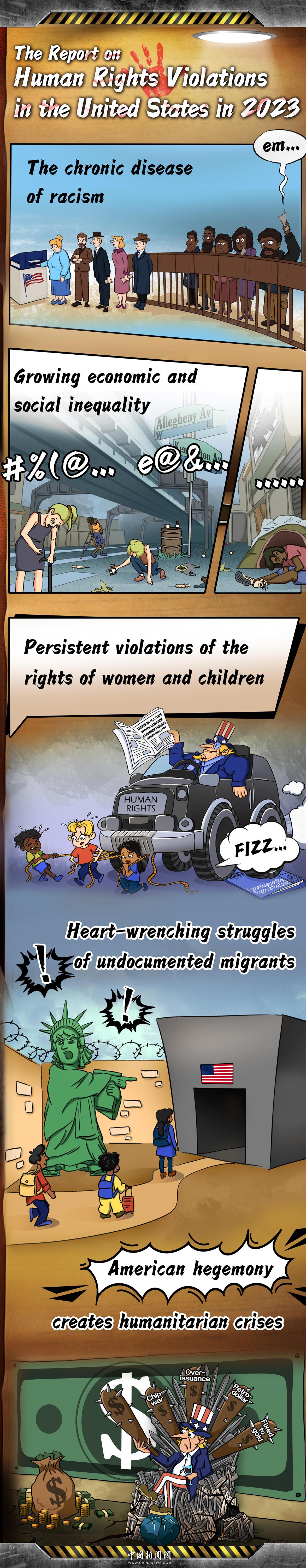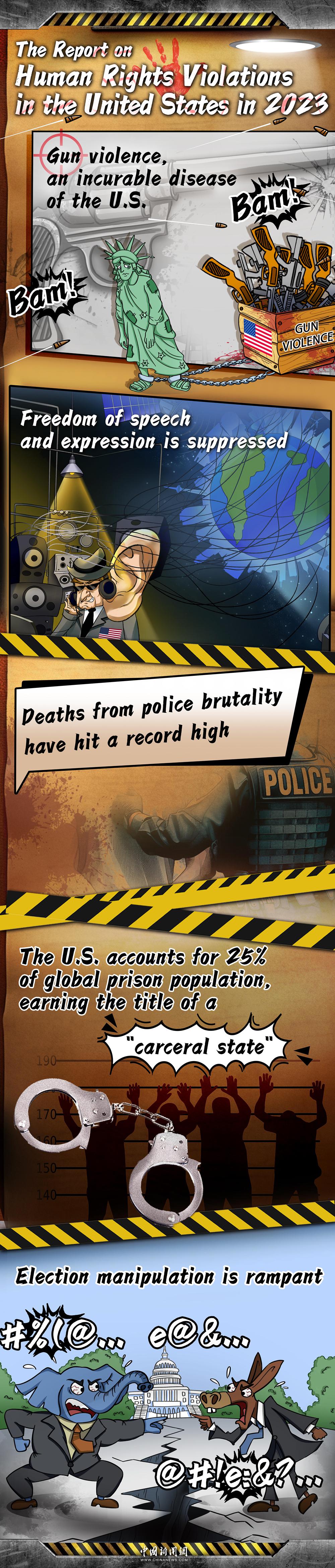 The United States likes to portray itself as the "beacon of human rights," yet the so-called beacon is getting dimmer. Earlier this week, China's State Council Information Office released a report on human rights violations in the United States in 2023. The report revealed that the United States underachieved in almost every area last year when it came to protecting human rights, including equality, non-discrimination, and health rights.